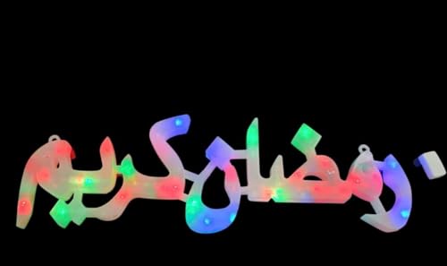H-Home - طبق مزخرف مضيء مع شعار رمضان كريم باللغة العربية - بلاستيك