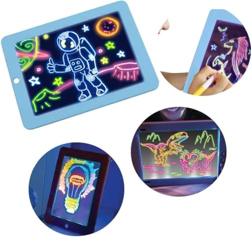 Generic - لوحة رسم مضيئة، تتضمن 3 أقلام مزدوج الجانبين ممحاة جافة و30 استنسل، قابلة لإعادة الاستخدام LED تضيء رسوماتك وقابلة للمسح وبطاقه تعزيز التهويه و8 تاثيرات ضوئيه