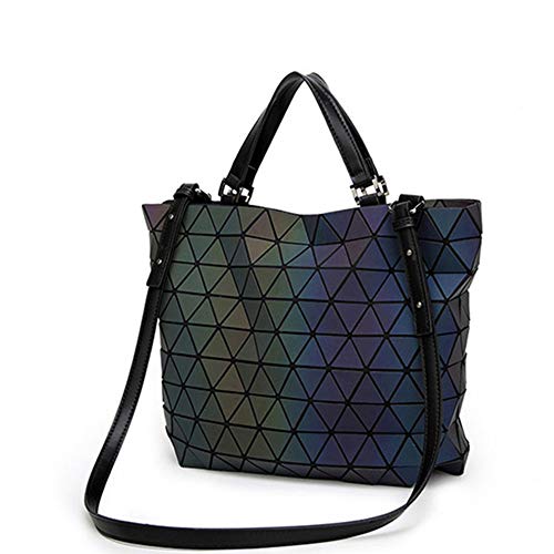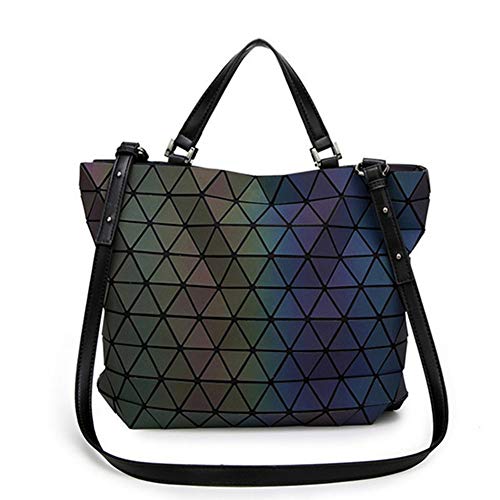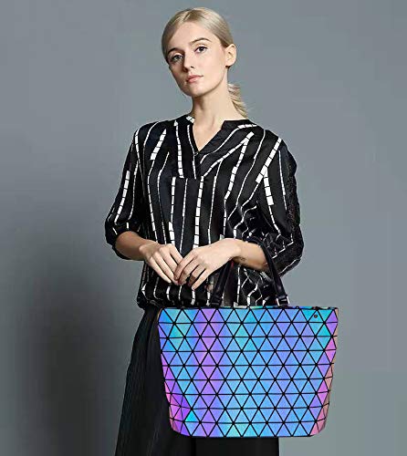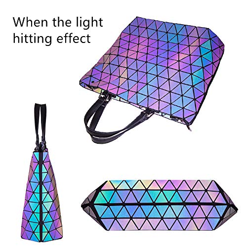 TAGDOT - محافظ وحقائب يد بتصميم هندسي مضيء للنساء، شنطة يد كبيرة توت هولوغرافيتش فلاش ريفليكتيف، شنطة ظهر طويلة تمر بالجسم مضيئة، مقاس L، لومينوس ايه ال AH175