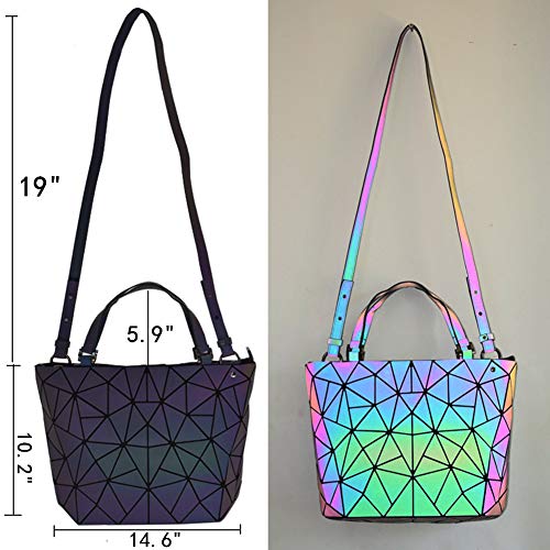 TAGDOT - محافظ وحقائب يد بتصميم هندسي مضيء للنساء، شنطة يد كبيرة توتس هولوغرافيتش فلاش ريفليكتيف، شنطة ظهر مضيئة بي ام