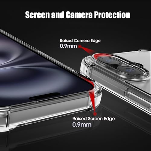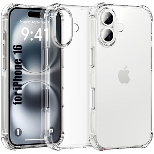 Lumobrilla - جراب شفاف تصميم رفيع ومحكم، مصنوع من إطار مرن من مادة بولي يوريثين المقاومة للحرارة [مضاد للصدمات] [حماية بمعايير عسكرية] مزود بزوايا معززة لموبايل آيفون 16 من لوموبريلا - شفاف