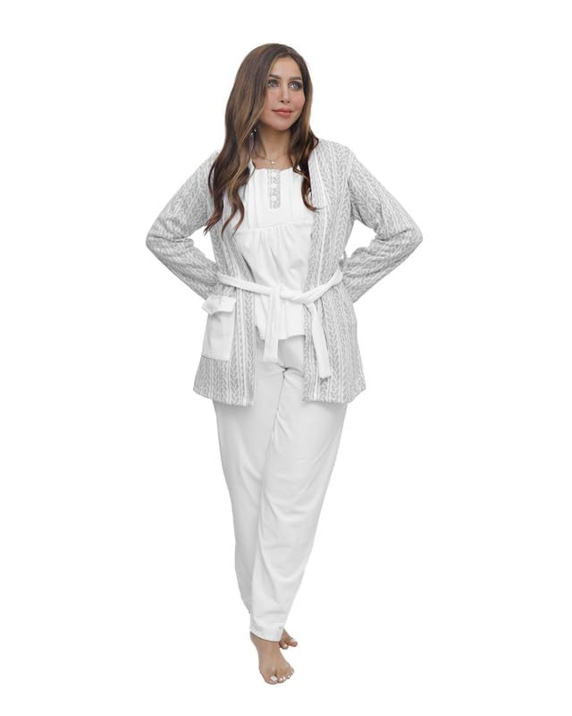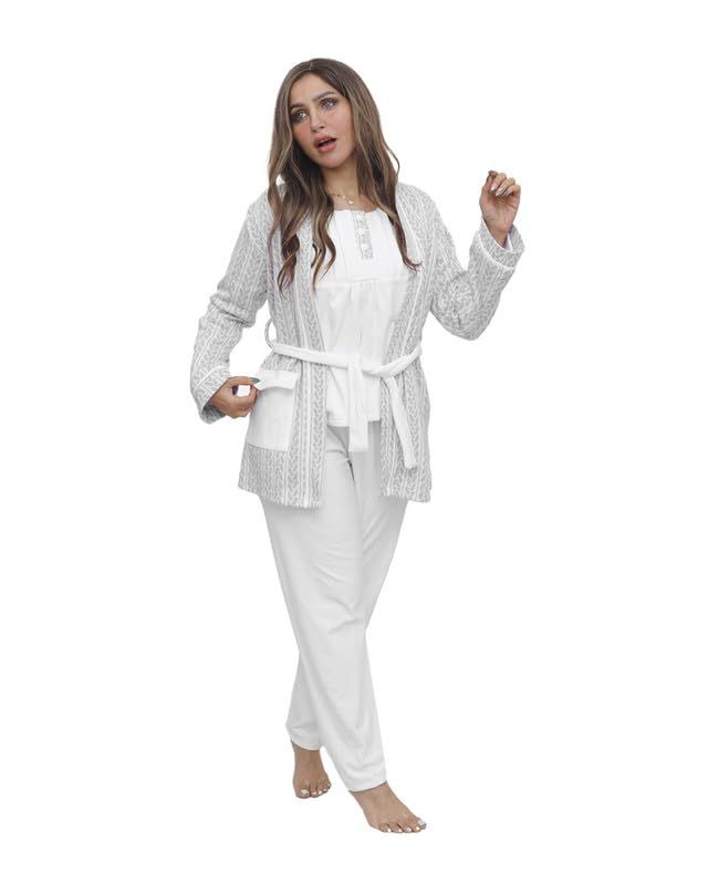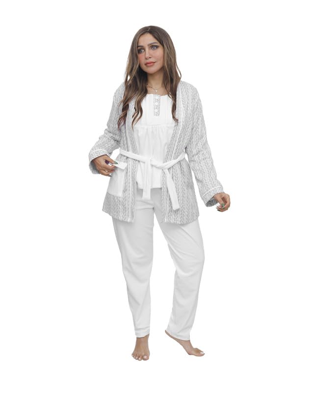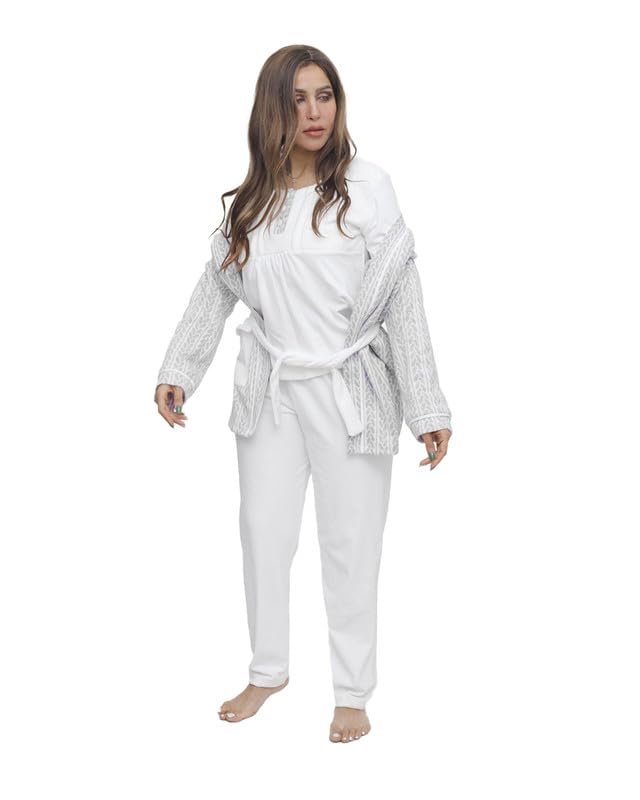 Luna - بيجامة قطيفة بأكمام طويله مع روب مقاس موحد للنساء من LUNA Lun-2049-Parent