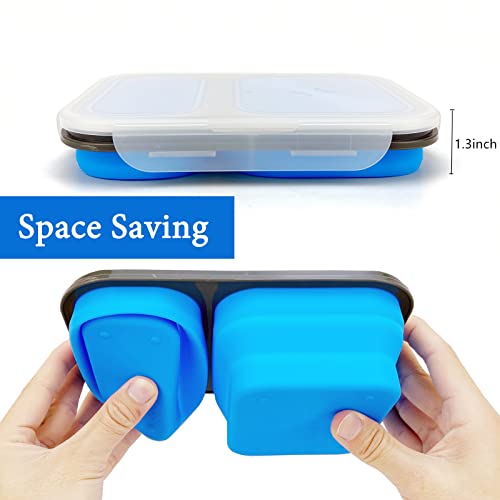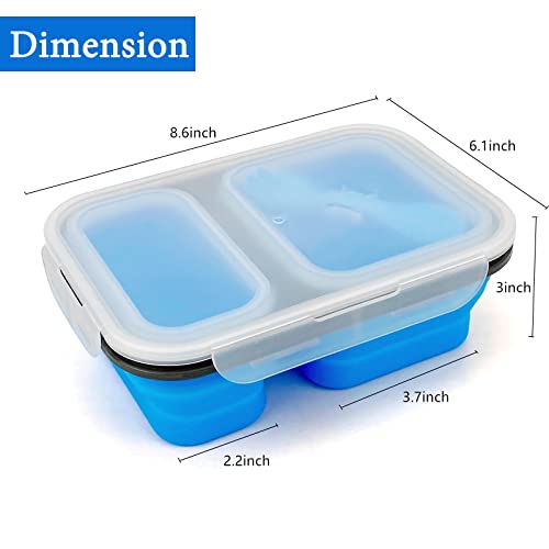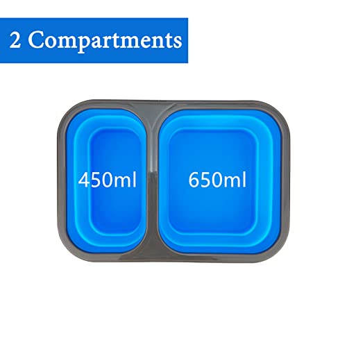 Lunbengo - صندوق بينتو قابل للطي مع قسمين مانع للتسرب، مقاسات مثالية 600 ملليلتر و450 ملليلتر، مع ملعقة وشوكة 2 في 1، وعاء غداء من السيليكون الآمن غذائيا للمدرسة والعمل والسفر، آمن للاستخدام في الميكروويف