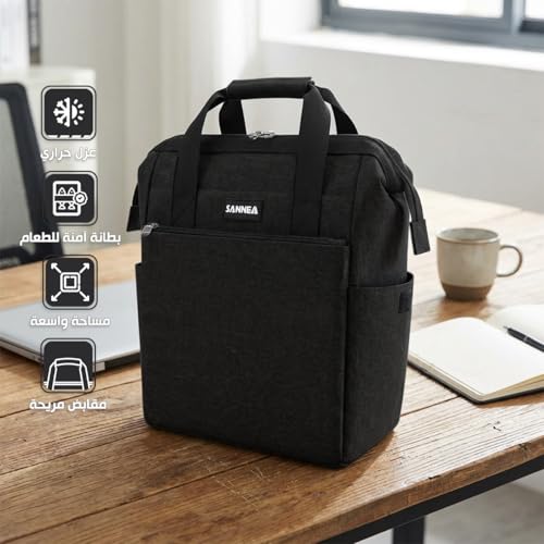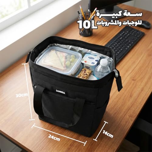 Generic - حقيبة غداء سعة 10 لتر، حقيبة تبريد طعام حرارية، حامل صندوق غداء مقاوم للماء ومانع للتسرب للعمل والمدرسة والنزهات والسفر والوجبات الساخنة والباردة، BB-524 (اسود)