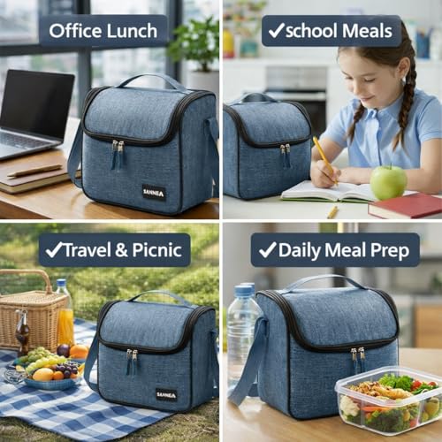 Generic - شنطة غداء سعة 6 لتر معزولة حراريا مع بطانة مقاومة للتسرب، مصنوعة من قماش اوكسفورد المقاوم للماء للوجبات الساخنة والباردة، مناسبة للعمل والمدرسة والسفر