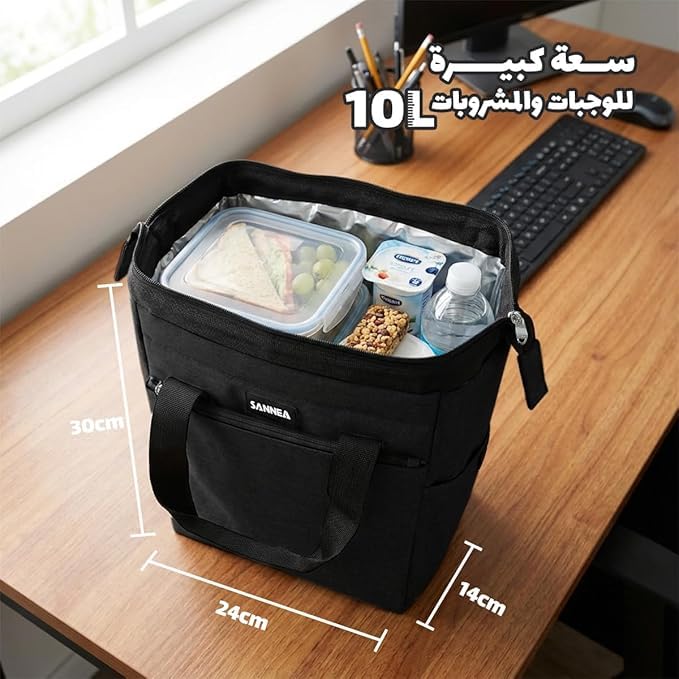 Generic - شنطة غداء حرارية سعة 10 لتر، شنطة تبريد طعام معزولة ومقاومة للتسرب ومقاومة للماء للعمل والمدرسة والنزهات والسفر BB-524 (اسود)