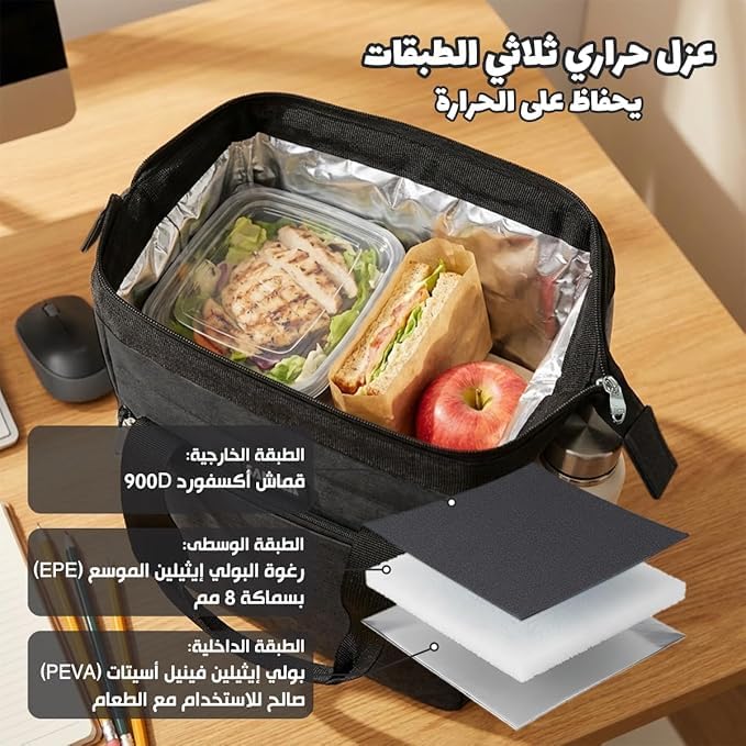 - حقيبة غداء معزولة للتنقل اليومي: احمل وجبتك المنزلية من حركة المرور في القاهرة إلى المكتب مع جزء داخلي حراري يساعد على الحفاظ على الطعام دافئًا أو باردًا حتى يحين وقت تناول الطعام.