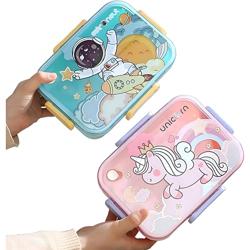 Generic - لانش بوكس - 1200 مل للاطفال ماجيك دورين 3 اقسام حاوية سلطة 80 مل بطابع يونيكورن مع ادوات مائدة للاستخدام المدرسي