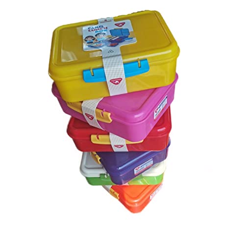 Generic - لانش بوكس مؤلف من 5 اقسام مع وعاء زبادي بطعم الفاكهة للاولاد والبنات بدون بولي بروبلين - امن - الوان متنوعة (برتقالي)