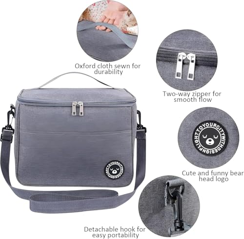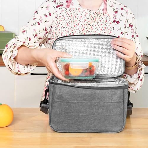 Generic - لانش بوكس حراري محمول ومقاوم للماء لتخزين الطعام، بتصميم صغير مانع للتسرب وقابل للطي مناسب للشاطئ والسفر والنزهات للنساء والرجال (رمادي)