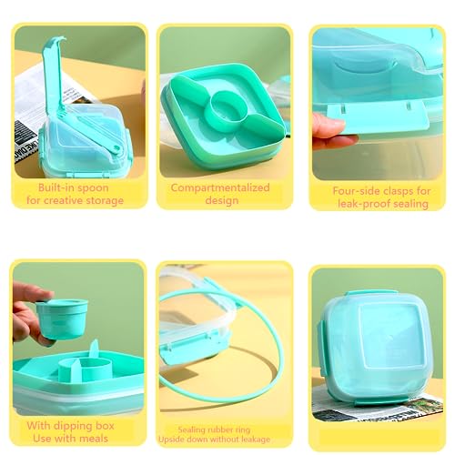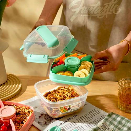 Limeow - لانش بوكس للأطفال من شماتزفاتزفاتز، مع مقصورات وحافظة للزبادي والفاكهة، والكبار، خال البيسفينول أ، أزرق مخضر
