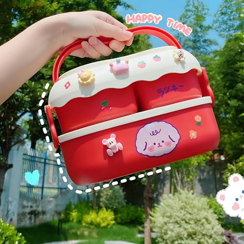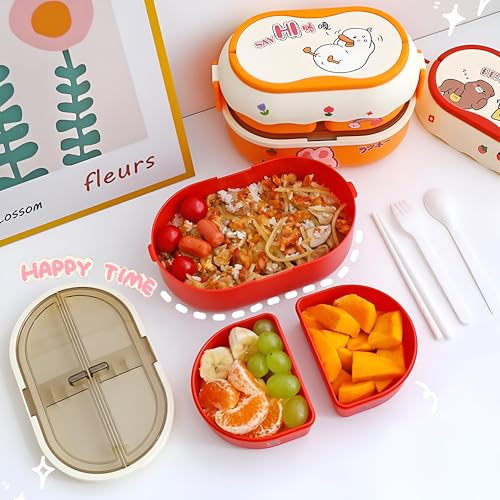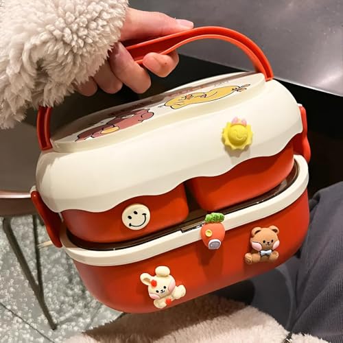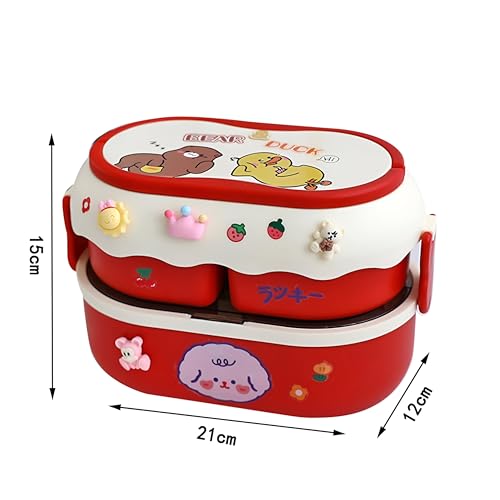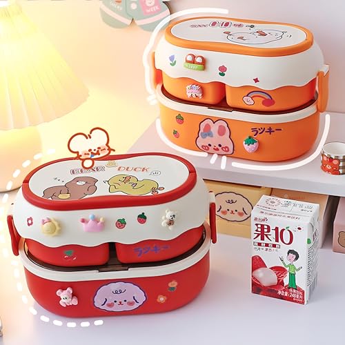 Generic - لانش بوكس - تصميم لطيف على شكل ارنب ودب بسعة 1700 مل، حاوية طعام من 3 اقسام تتميز بملصقات ثلاثية الابعاد، مثالية لوجبات الاطفال في المدرسة والمنزل، مواد غير سامة متعددة الالوان