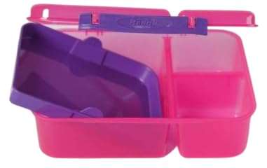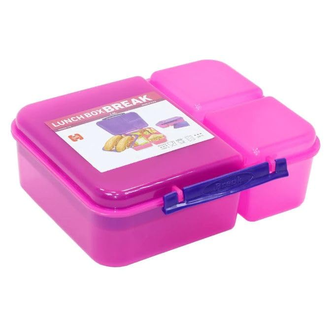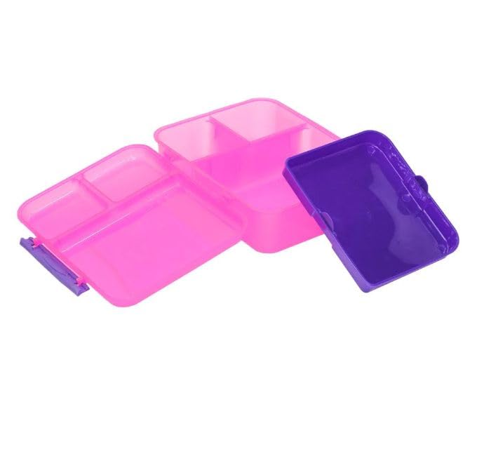 Generic - لانش بوكس ولادي وبناتي - حاوية طعام مكون من ثلاث اقسام وسطح مزدوج -صندوق غذاء مانعه للتسرب خالية البيسفينول ايه ومواد امنة غذائيا وامن للميكروويف وردي