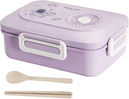 Generic - صندوق غداء للأطفال أو الكبار ، 1.2 لتر، صندوق غداء على شكل رائد فضاء كرتوني مع ملعقة وعيدان طعام، غطاء محكم الغلق، 3 أقسام، آمن للاستخدام في الميكروويف ومقاوم للتسرب، مناسب للمدرسة