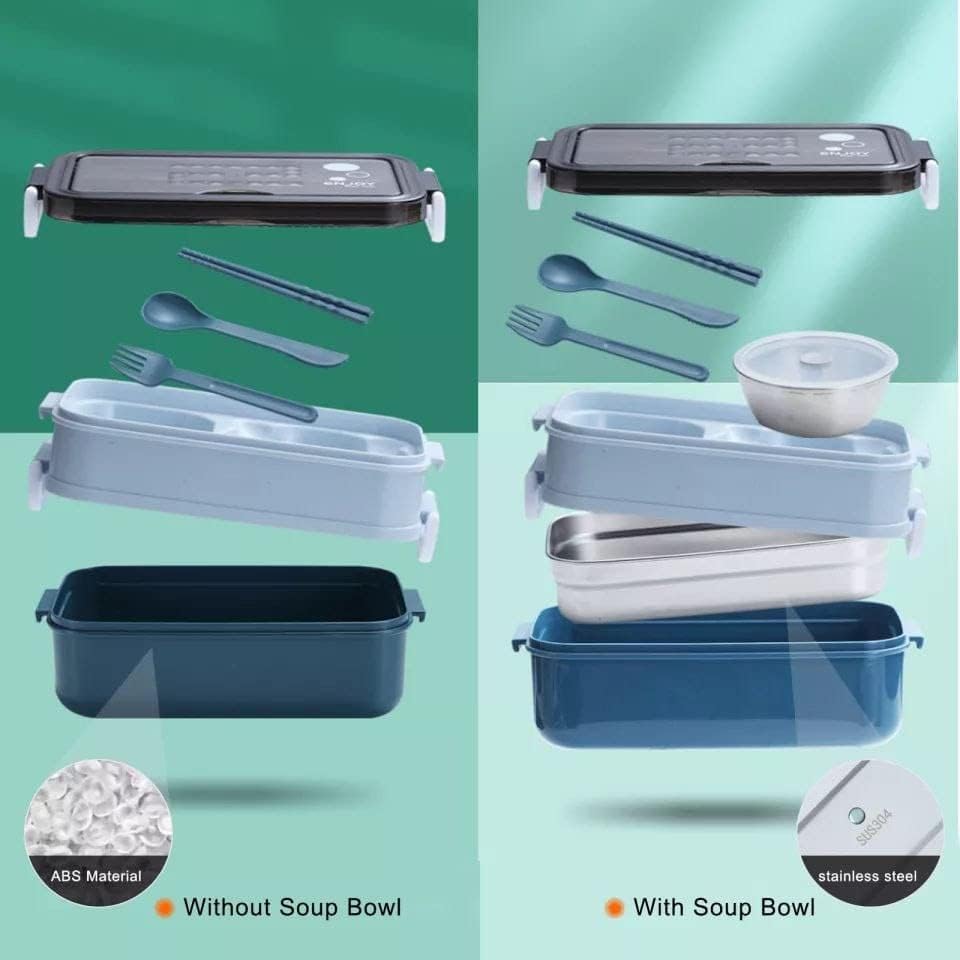 Generic - لانش بوكس لك ولاطفالك P5. بلاستيك صحي نقي 3 ادوار بحواف دائرية مع معلقة وشوكة ومشابك مضادة للانسكاب مع غطاء شفاف وحامل موبايل (ازرق)