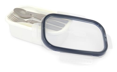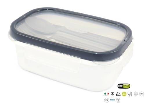 Generic - لانش بوكس بون ابيتيتو مزود بـ4 مشابك إغلاق مع ملعقة وشوكة وسكينة ومصنوع في إيطاليا من جيو ستايل، 1.5 ل