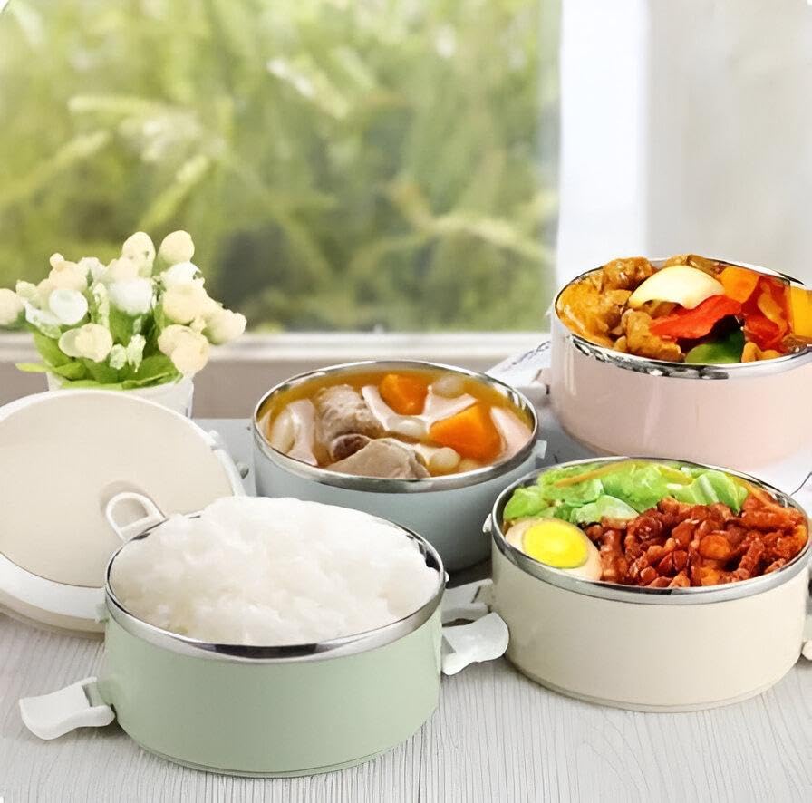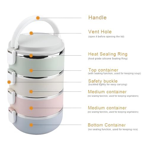 Generic - لانش بوكس - حاوية طعام معزولة باربع طبقات للوجبات الساخنة والطازجة، تصميم محمول من الستانلس ستيل مانع للتسرب مثالي للسفر والاستخدام اليومي