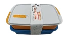 Generic - مجموعة لانش بوكس، قسمين، برتقالي وأزرق، حاويات طعام قابلة لإعادة الاستخدام
