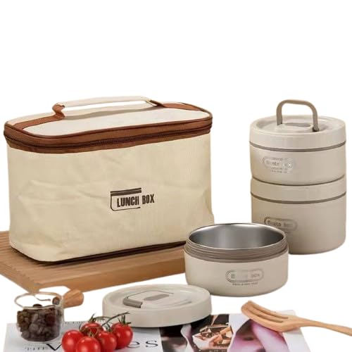 Generic - طقم صندوق غداء 4 × 1 مع شنطة حرارية - 4 حاويات بمقاسات مختلفة، غطاء محكم الاغلاق، مناسب للطعام والشوربة