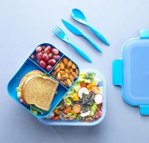 Generic - طقم لانش بوكس مع شوكة وسكينة وملعقة وبوتيل بلاستيك صحي عالي الجودة مناسب للميكروويف وغسالة الاطباق والفريزر محكم الغلق للمدرسة K (ازرق, لانش بوكس 2.1ل+بوتيل800م)
