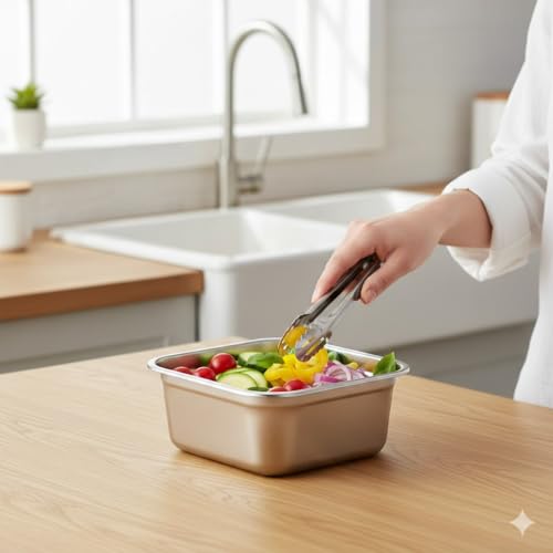 - 5️⃣ قابلة لإعادة الاستخدام، متينة وسهلة التنظيف، الجزء الداخلي من الستانلس ستيل الناعم ينظف بسهولة، يقاوم الروائح، ويوفر بديلاً صديقًا للبيئة للحاويات التي تُستعمل لمرة واحدة.