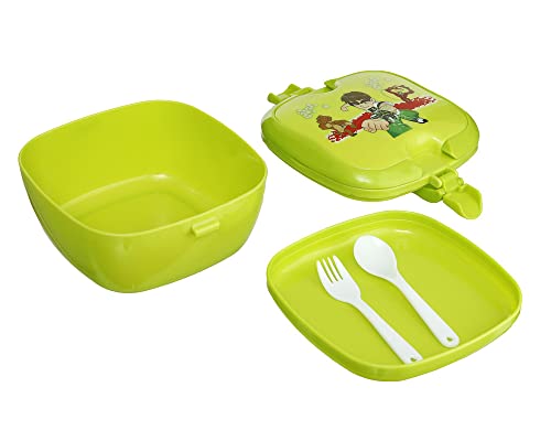 Generic - لانش بوكس مع معلقة وشوكه للأطفال, اخضر