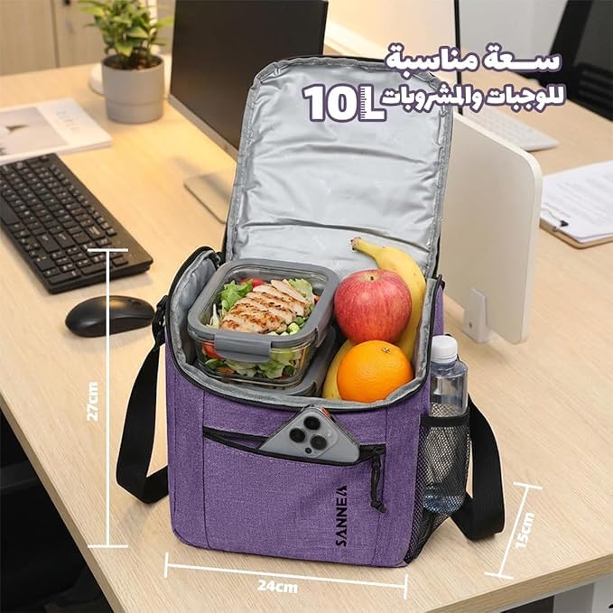 Generic - شنطة تبريد الغداء سعة 10 لتر معزولة وقابلة لاعادة الاستخدام، شنطة حمل حرارية مقاومة للماء ومانعة للتسرب مع مقابض للوجبات الساخنة او الباردة والعمل والسفر، BB-519 (ارجواني)