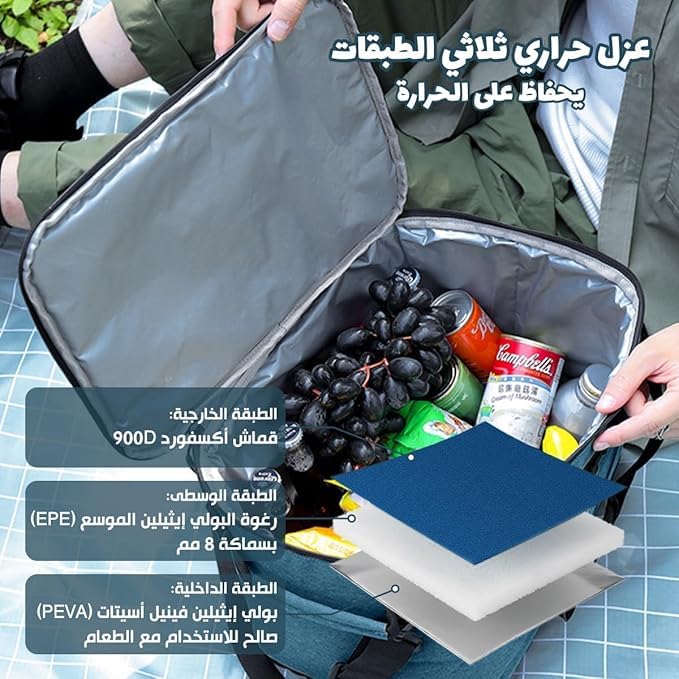 - سعة كبيرة 25 لتر للوجبات الحقيقية: مساحة داخلية واسعة تناسب العديد من الحاويات والوجبات الخفيفة والمشروبات لإعداد الوجبات أو النوبات الطويلة أو النزهات العائلية