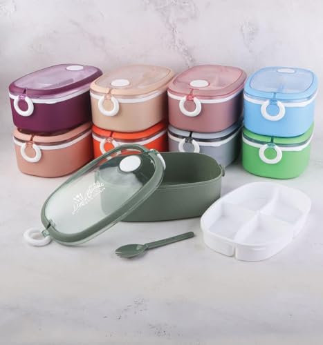Generic - لانش بوكس بينتو بتصميم مزدوج المقصورات مانع للتسرب مع أدوات تناول طعام مدمجة من لانش ماستر، متعدد الألوان، سعة 1.2 لتر