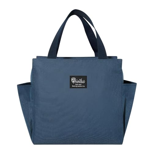Generic - حل تخزين الغداء - حقيبة نسائية من القماش السميك المعزول قابلة لاعادة الاستخدام للمدرسة والنزهات والعمل والاستخدام الخارجي والحفاظ على الطعام طازجًا وأنيقًا (كحلي)