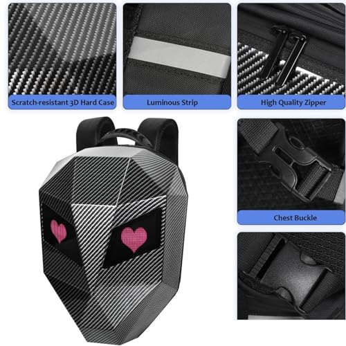 Luocute - شنطة ظهر للموتوسيكلات للرجال، شنطة ظهر للاب توب بسعة كبيرة مزودة بإضاءة ليد تعمل بمنفذ USB، هيكل صلب ثلاثي الأبعاد مقاوم للماء من ألياف الكربون وشاشة ملونة رقمية قابلة للبرمجة، لون أسود