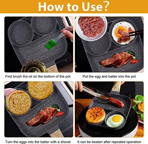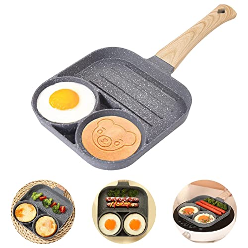 LUPATDY - طاسة بان كيك متعددة الاغراض بثلاث فتحات قلي بيض مقاومة للالتصاق بالاضافة الي البيض يمكنك شوي السجق وتحميص الستيك خالية من بي او ايه رمادي الألومنيوم لوباتدي