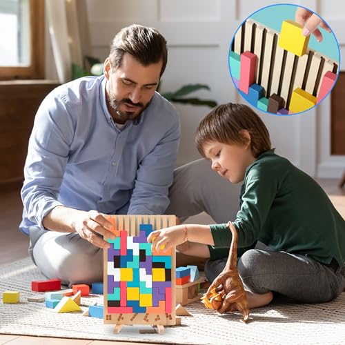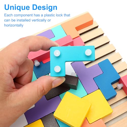 - لعبة تيتريس خشبية: هذه اللعبة التعليمية مصنوعة من خشب عالي الجودة، مصقولة بدقة لضمان عدم وجود نتوءات، آمنة ومتينة