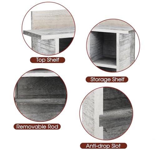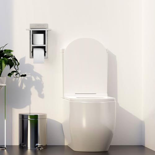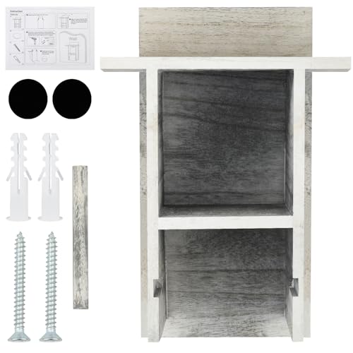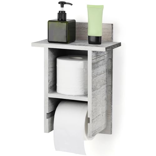 Luplom - حامل ورق تواليت خشبيم يثبت على الحائط، حامل لفة مناديل ورقية بنمط ريفي، منظم مناديل ورقية من طبقتين مع رف تخزين للحمام والمطبخ والمنزل من لوبلو، أبيض ريفي