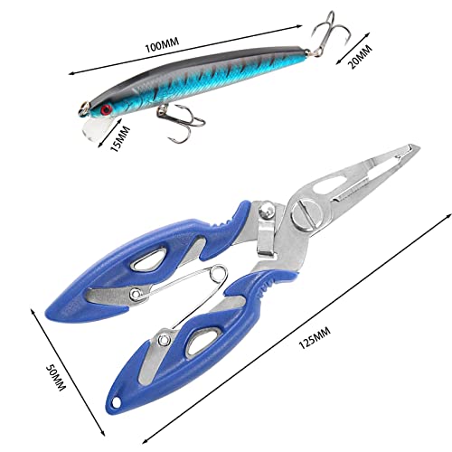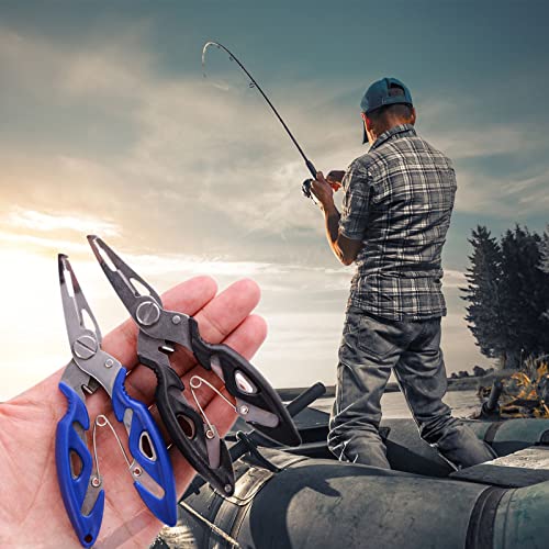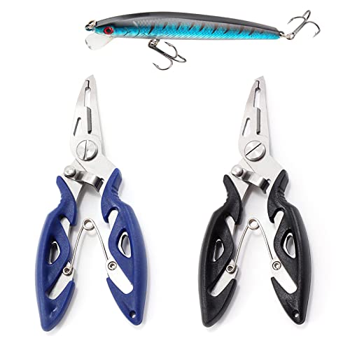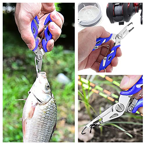 ZHULIN - أدوات صيد السمك تشمل كماشة من الفولاذ المقاوم للصدأ ومقصات لخيط صيد السمك متعددة الأغراض وعالية القوة، باللونين الأسود والأزرق، 3 قطع