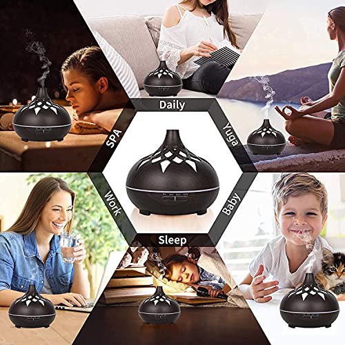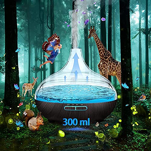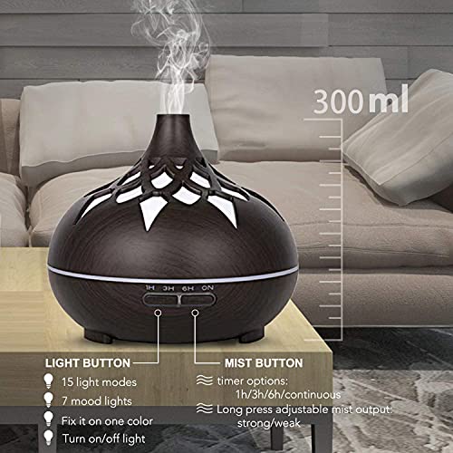 LUSHF - فواحة زيوت عطرية للعلاج بالروائح ومرطب الهواء البارد، فواحة عطور بالزيوت العطرية الاساسية مع 7 اعدادات لتقنية الاضاءة المحيطة و3 مؤقتات بدون ماء، يغلق تلقائيا (خشب غامق)
