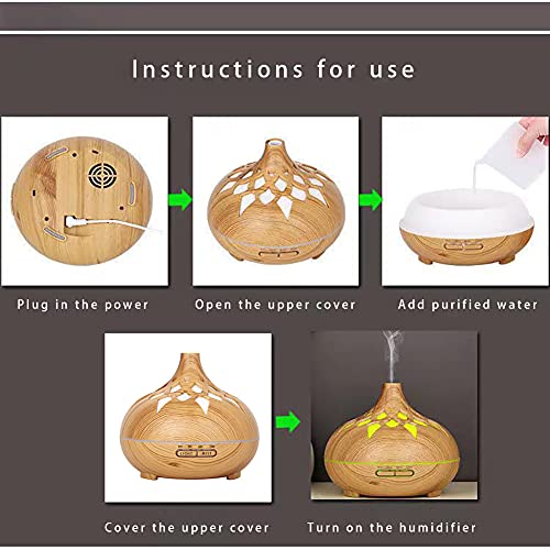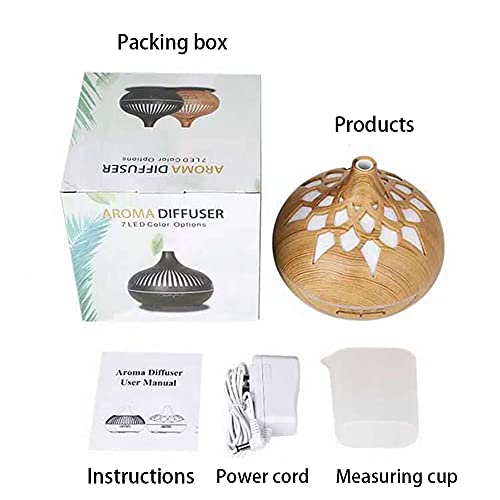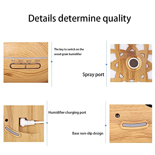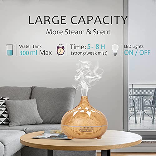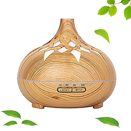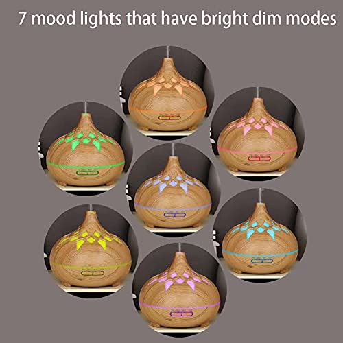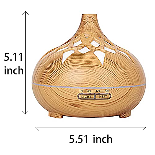 LUSHF - فواحة زيوت عطرية وفواحة روائح علاجية ومرطب بالرذاذ البارد - فواحة زيوت عطرية مع 7 انواع من اعدادات الاضاءة المحيطة و3 مؤقتات، تلقائي الغلق بدون ماء (خشب فاتح)