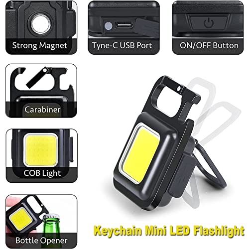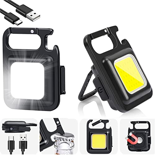 LUTITASD - مصباح سلسلة مفاتيح جاكيرامي من لوتيتاسد - القابلة لاعادة الشحن، 5 اوضاع اضاءة، سلسلة مفاتيح صغيرة مع فتاحة زجاجات قابلة للطي وقاعدة مغناطيسية لحالات الطوارئ وفي الخارج