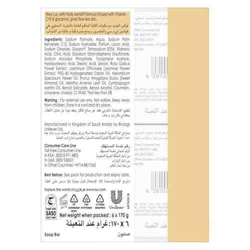 LUX - صابون لبشرة خالية من العيوب بالزنبق مع فيتامين سي وهـ والجلسرين من لوكس، 170 جم (عبوة من 6 قطع)