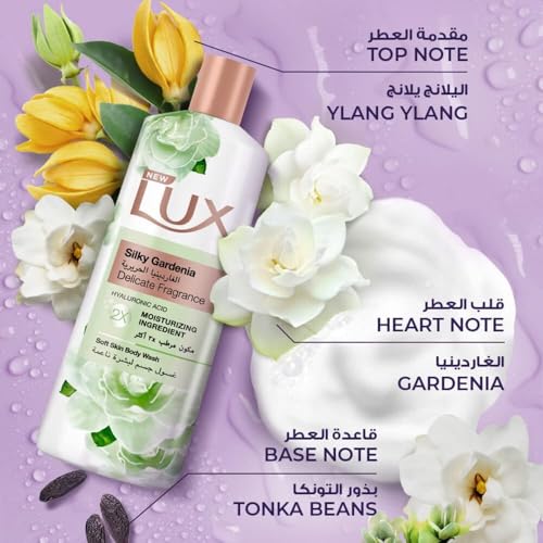 - احصلي على بشرة ناعمة بشكل ساحر مع رائحة الجاردينيا الحريرية الرقيقة من جل الاستحمام لوكس