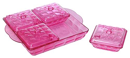 Lux - طبق مكسرات تركي من لوكس، 4 خانة - فوشيا