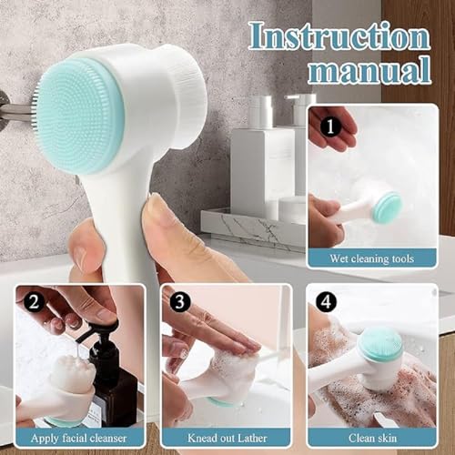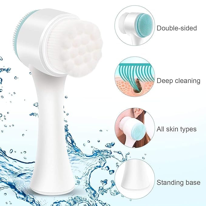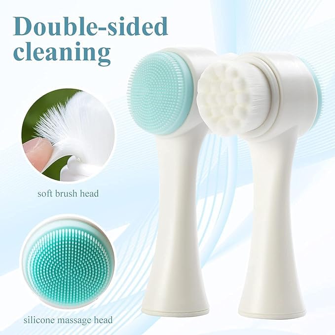 Luxansa - فرشاة وجه 2 في 1 من لوكسانسا، فرشاة تنظيف الوجه مزدوجة الجانب للعناية بالبشرة، فرشاة وجه ثلاثية الابعاد بشعيرات ناعمة لتدليك بشرتك وفركها، فرشاة تنظيف الوجه اليدوية من السيليكون