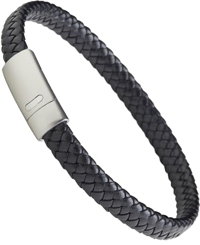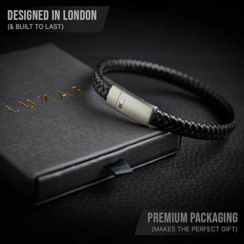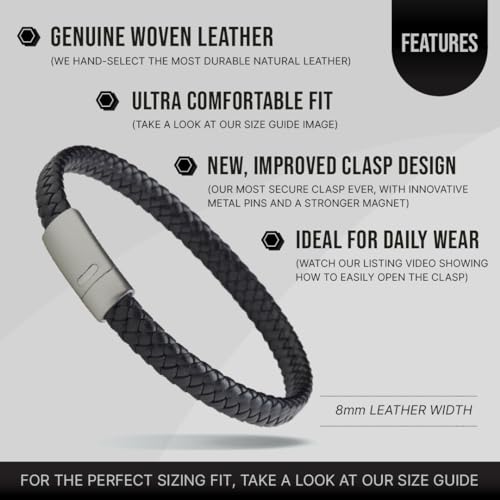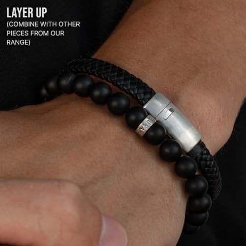 LUXAR - LUXAR Men’s Genuine Leather Bracelet | Interwoven Black Leather Bracelets with Brush Stainless Steel Clasp | Minimalist, Designer Jewelry for Men