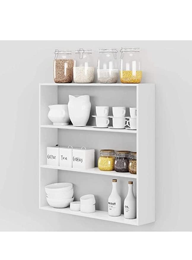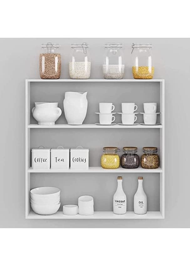 LUXENWOOD - رف خشبي مثبت على الحائط بثلاثة مستويات متعدد الاستخدامات للتخزين والتنظيم في المطبخ والحمام والمنزل والمكتب بتصميم منظم معلق ريفي يضيف لمسة جمالية لديكور غرفة المعيشة من لوكسينوود، لون أبيض