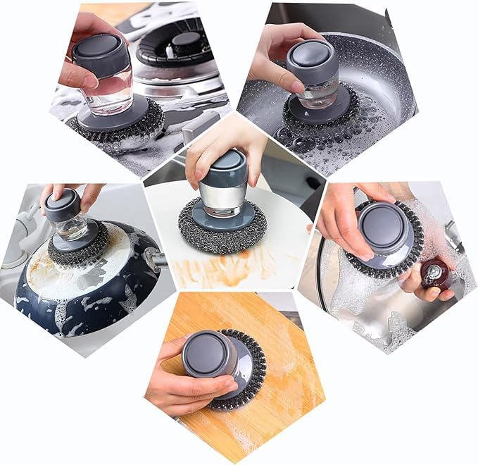 - *فرشاة تنظيف مطورة لتوزيع الصابون: تتميز ليفة الفولاذ المقاوم للصدأ هذه بفرشاة توزيع الصابون مع يد، مما يوفر تنظيفًا فعالًا دون فوضى، ويحافظ على يديك وأظافرك نظيفة. يأتي المنتج مع صينية مريحة لإبقاء سطح العمل جافًا ومرتبًا