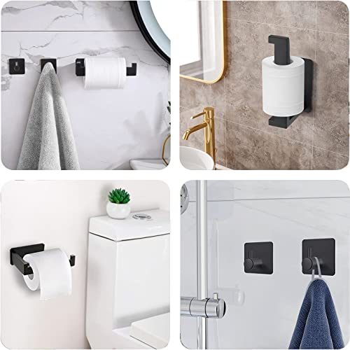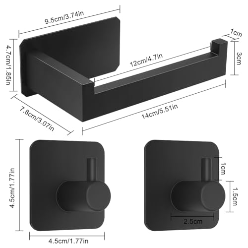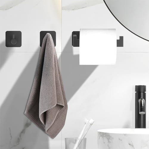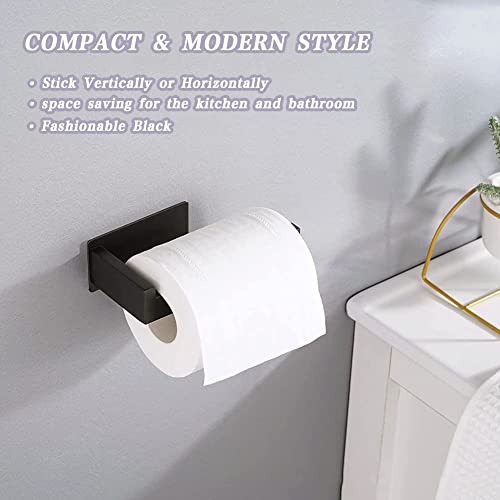 LUXMAY - حامل ورق التواليت من لوكسماي، حامل ورق تواليت ذاتي اللصق بدون ثقب، حامل بكرة التواليت من الستانلس ستيل، حامل ورق التواليت مع قطعتين من خطافات المناشف للحمام والمطبخ، اسود