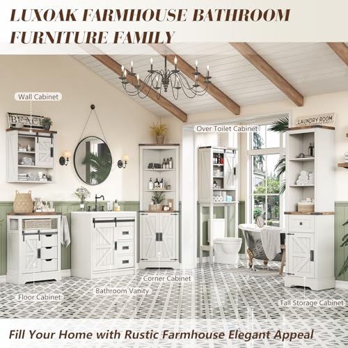LUXOAK - دولاب حائط للحمام بتصميم باب حظيرة منزلق ورف قابل للتعديل، دولاب أدوية مثبت على الحائط، دولاب تخزين للحمام والتواليت والمطبخ وغرفة المعيشة، بلوط ريفي وأبيض من لوكسوك، ارتفاع 61 سم