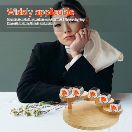 Luxshiny - صينية تقديم السوشي من الخشب الياباني، طبق لحم، طبق سوشي ياباني بتصميم سلالم دوارة، طبق لحم ولتقديم السوشي الساشيمي للمطاعم، طبق جيتا دائري من لوكس شايني