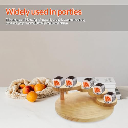 - 🍣صينية سوشي على الطراز الياباني، طبق سوشي خشبي، صينية سوشي رقيقة، طبق تقديم السوشي بتصميم سلالم دوارة. قابلة لإعادة الاستخدام وتوفر الكثير من المال، لتخزين السوشي والسلمون والمأكولات البحرية والوجبات الخفيفة.