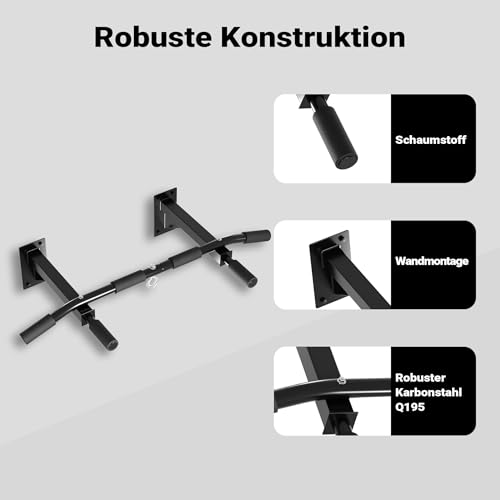 LUXTRI - قضيب سحب للتثبيت على الحائط من الصلب بسعة حمولة تصل إلى 200 كجم بمقابض مبطنة، ملحقات اللياقة البدنية للتدريب المنزلي وللتمارين الرياضية المختلفة من لوكستري